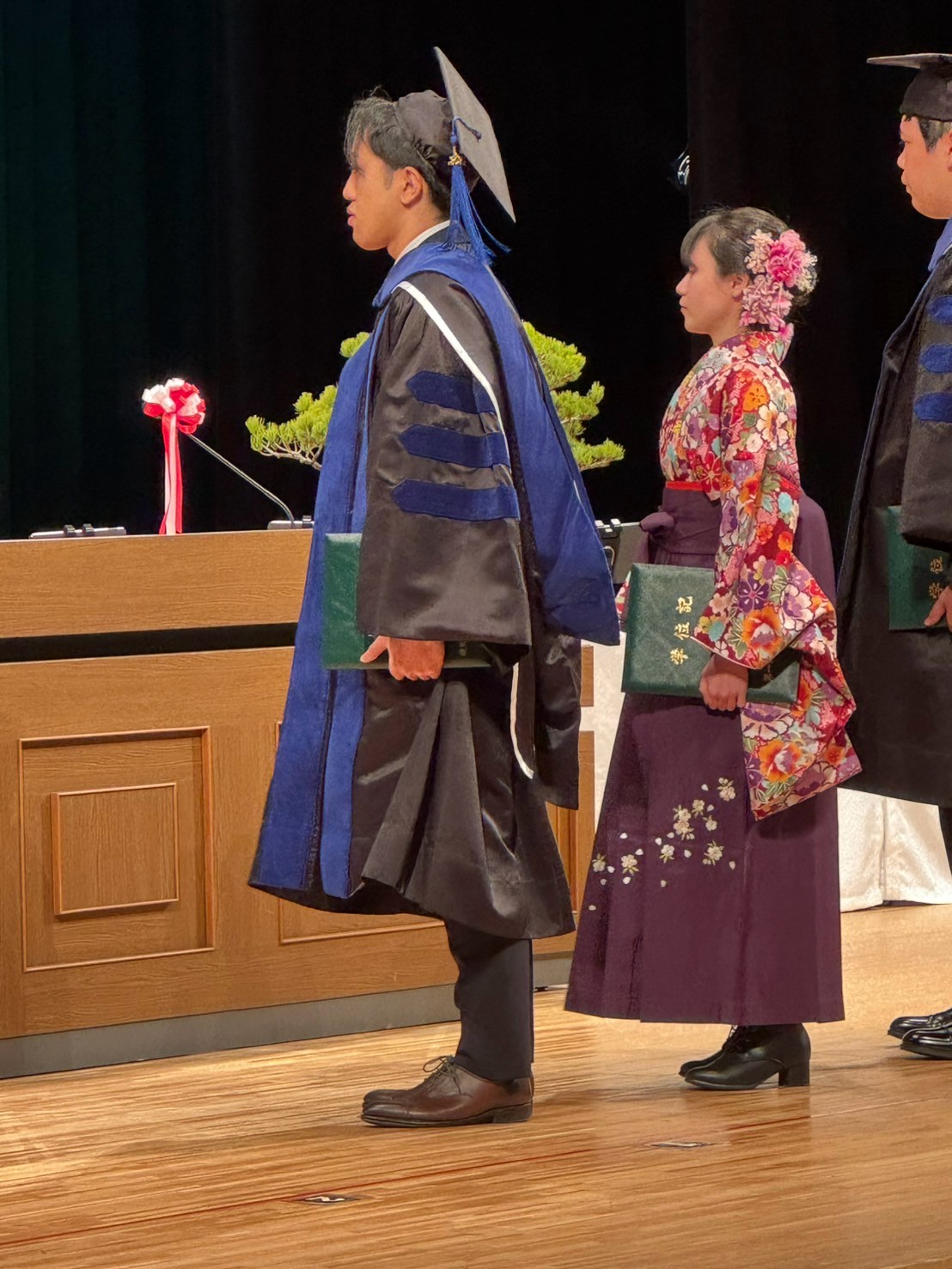 晴天に恵まれ、厳かな雰囲気の中、卒業式を迎える学生のその姿は、とても凛々しく自信に満ちたその笑顔に、とても頼もしさを感じました。