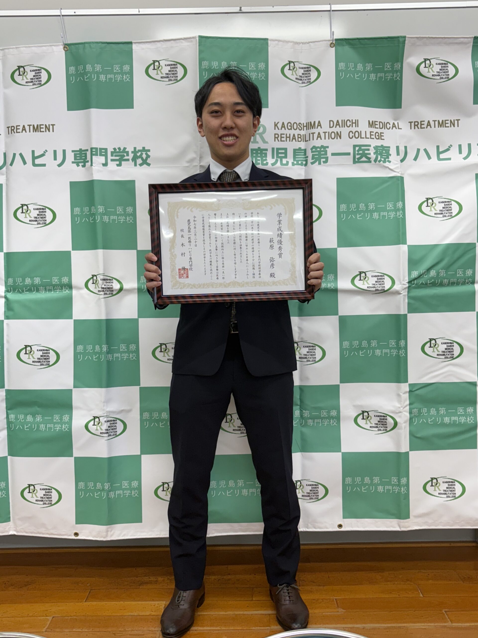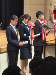 〇答辞 前学友会長 柔道整復学科 3年 岩川 貴文(国分中央高校出身)