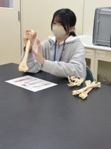 1年生で学習する機能解剖学:上腕と前腕の骨標本の組み合わせ