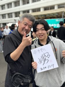あばれる君とのじゃんけん勝ち抜きで、「汗付きサイン」をゲットしたJT学生!