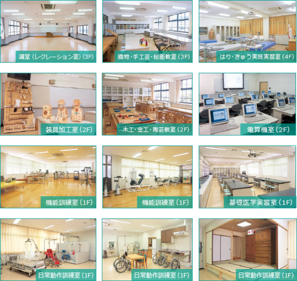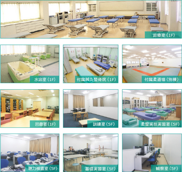 - 柔道整復学科及びはり・きゅう学科には、それぞれ付属の整骨院、鍼灸院が併設されており、校内において実際の患者様を対象とした臨床実習が可能です。
